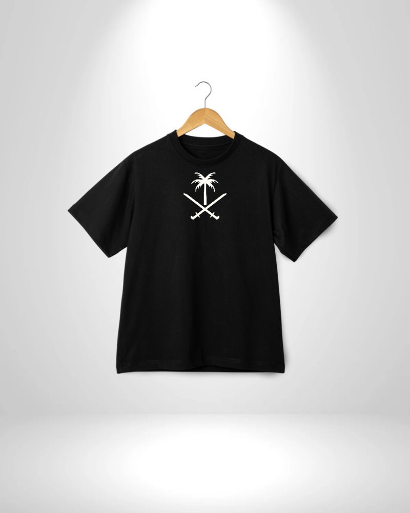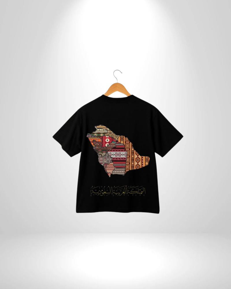 تيشيرت اسود بأكمام قصيرة بطباعة اماميه وخلفية لليوم الوطني
