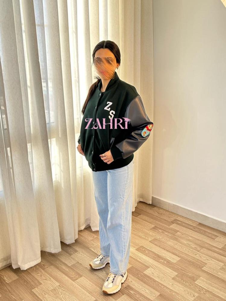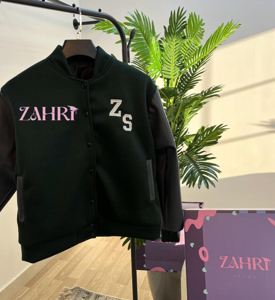 جاكيت سينيور زهري - لون اخضر زيتي بأكمام رمادي غامق