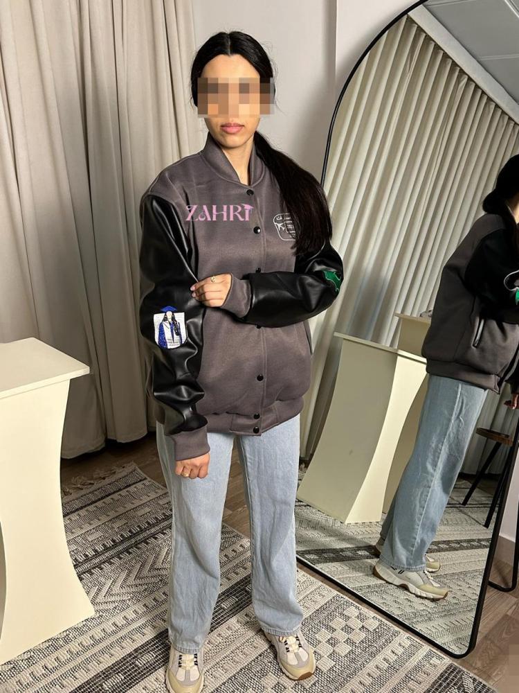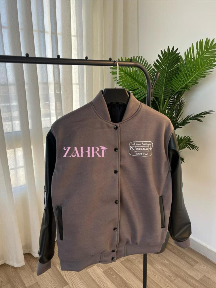 جاكيت سينيور زهري - لون رمادي بأكمام سوداء جلد