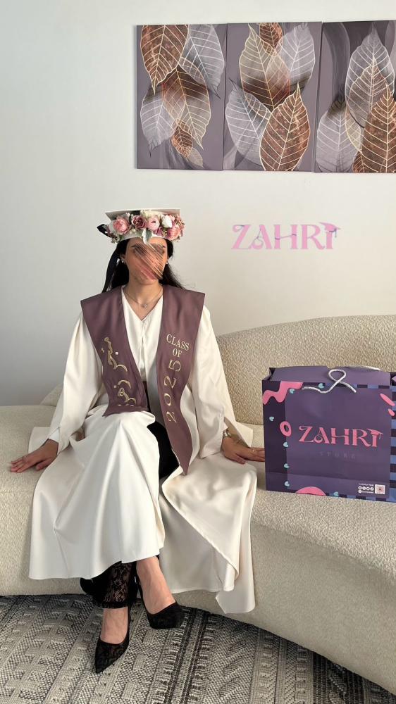 عباية اوف وايت ووشاح نود مطرز وكاب