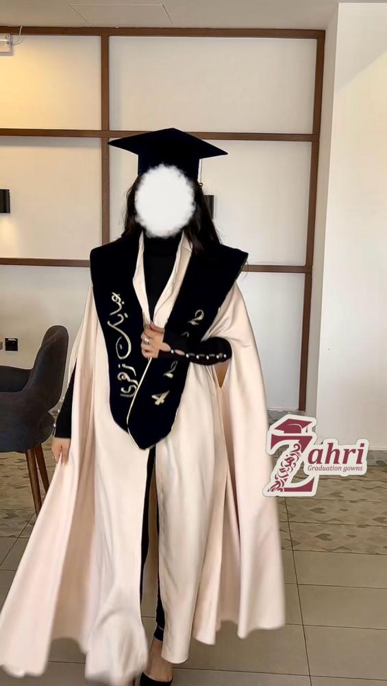عباية بشت بيج + وشاح اسود مخمل مطرز وكاب مطرز