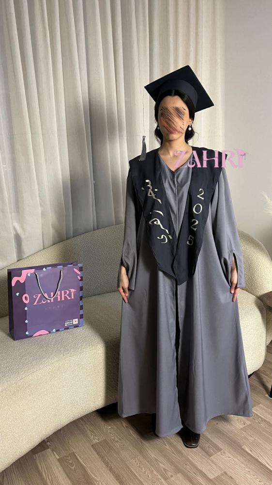 عباية رمادي بفتحة كم ووشاح رمادي غامق وكاب