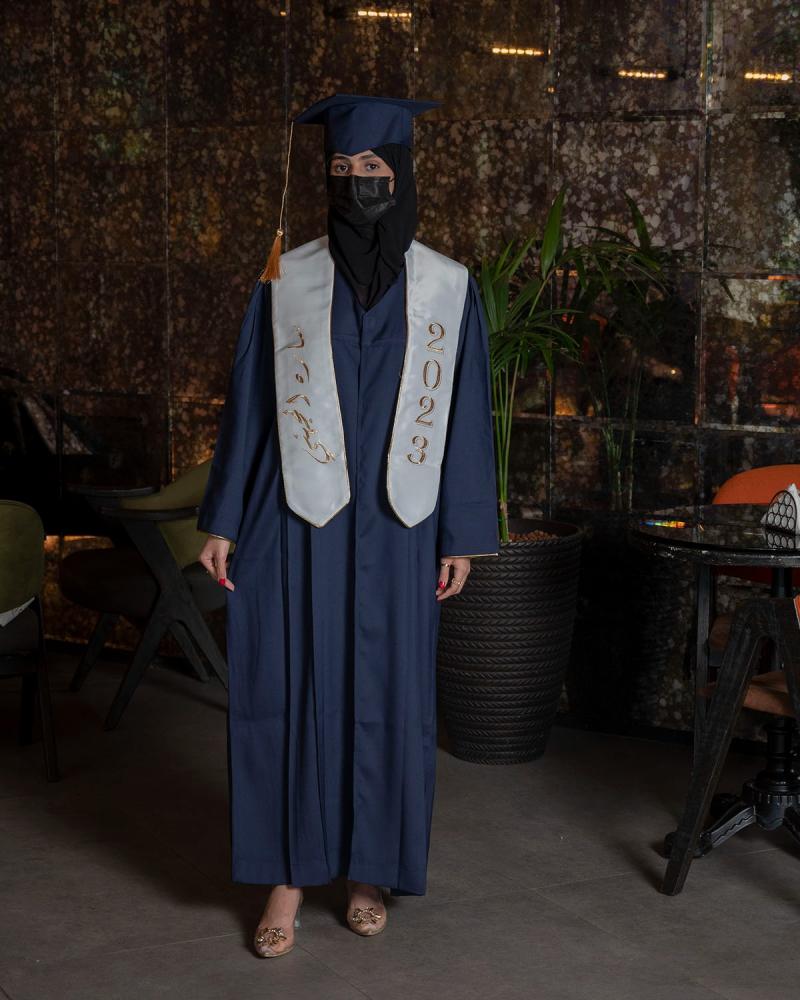 عباية كحلي + وشاح اوف وايت مطرز وكاب