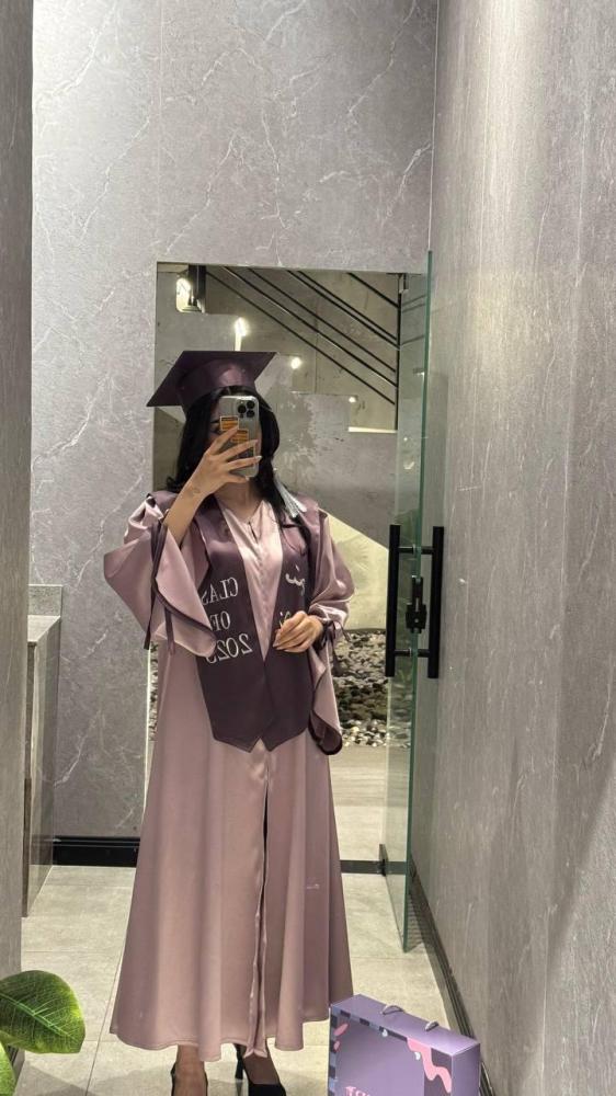 عباية موفي بفتحة كم محددة ب للون موفي غامق ووشاح موفي غامق مطرز وكاب