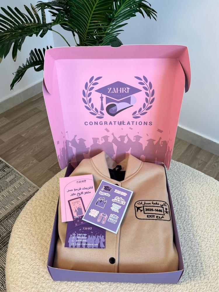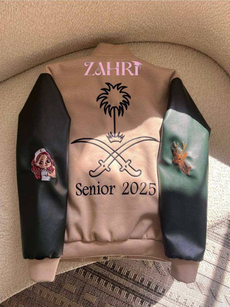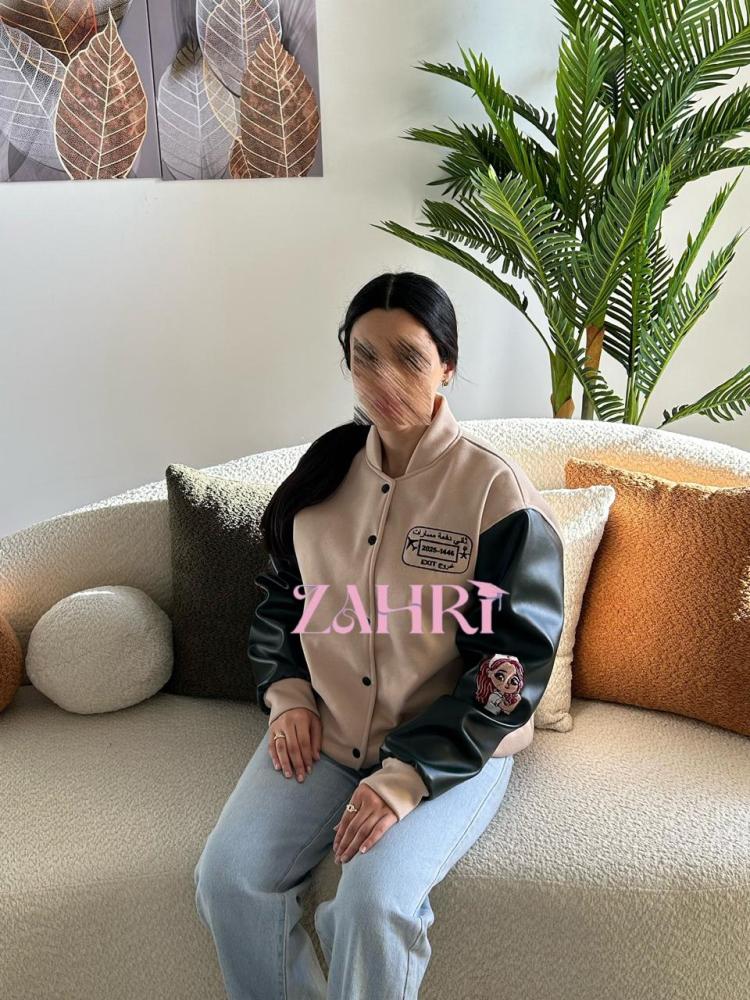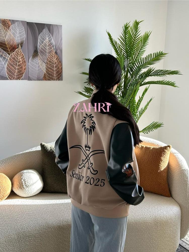 جاكيت سينيور زهري - لون بيج غامق بأكمام زيتي جلد