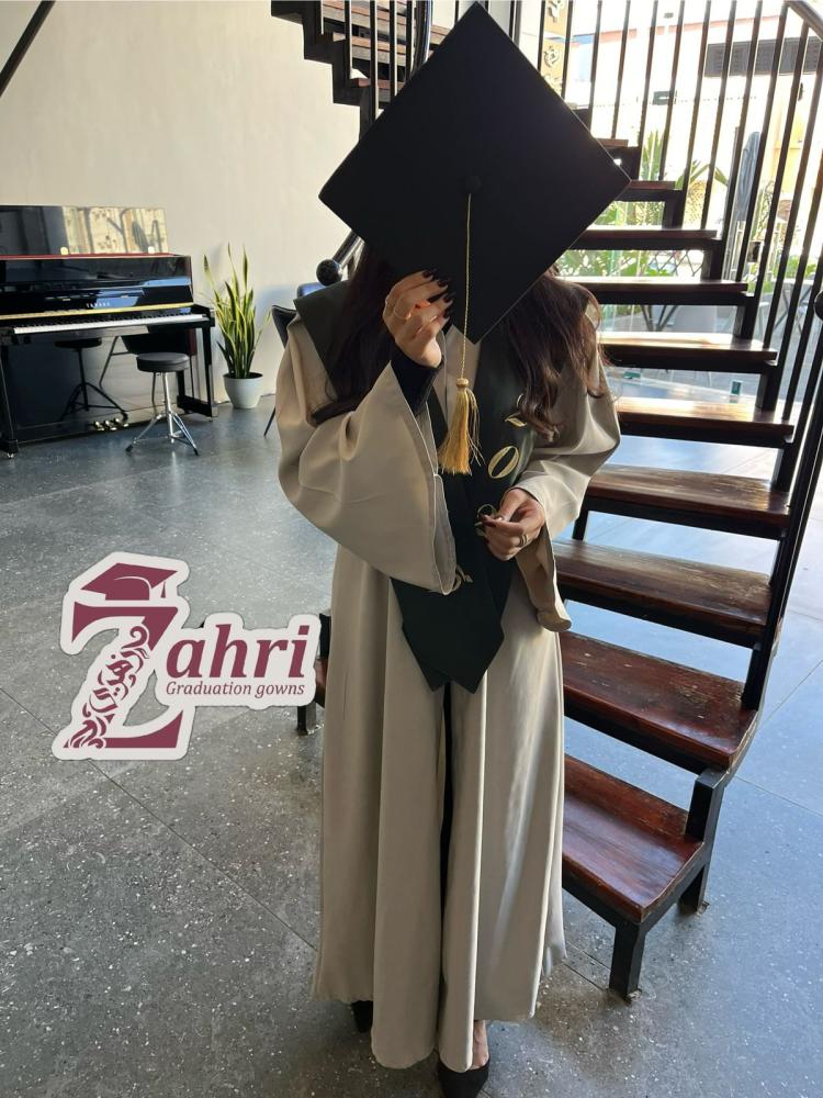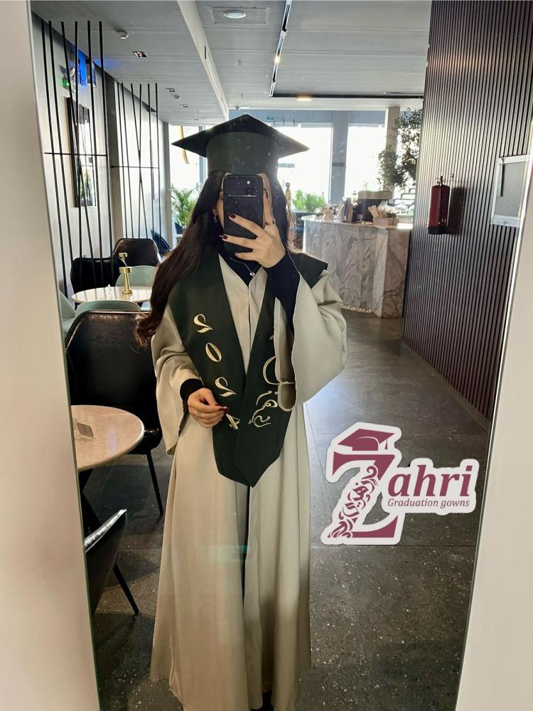 عباية تفاحي فاتح + وشاح زيتي مطرز وكاب